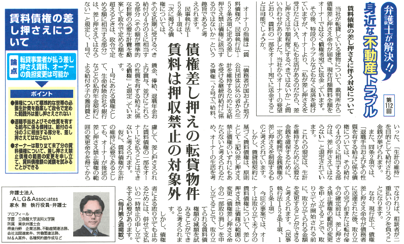 執行役員・弁護士 家永 勲による連載「弁護士が解決!!身近な不動産トラブル」『第123回 賃料の自動改定特約の有効性』